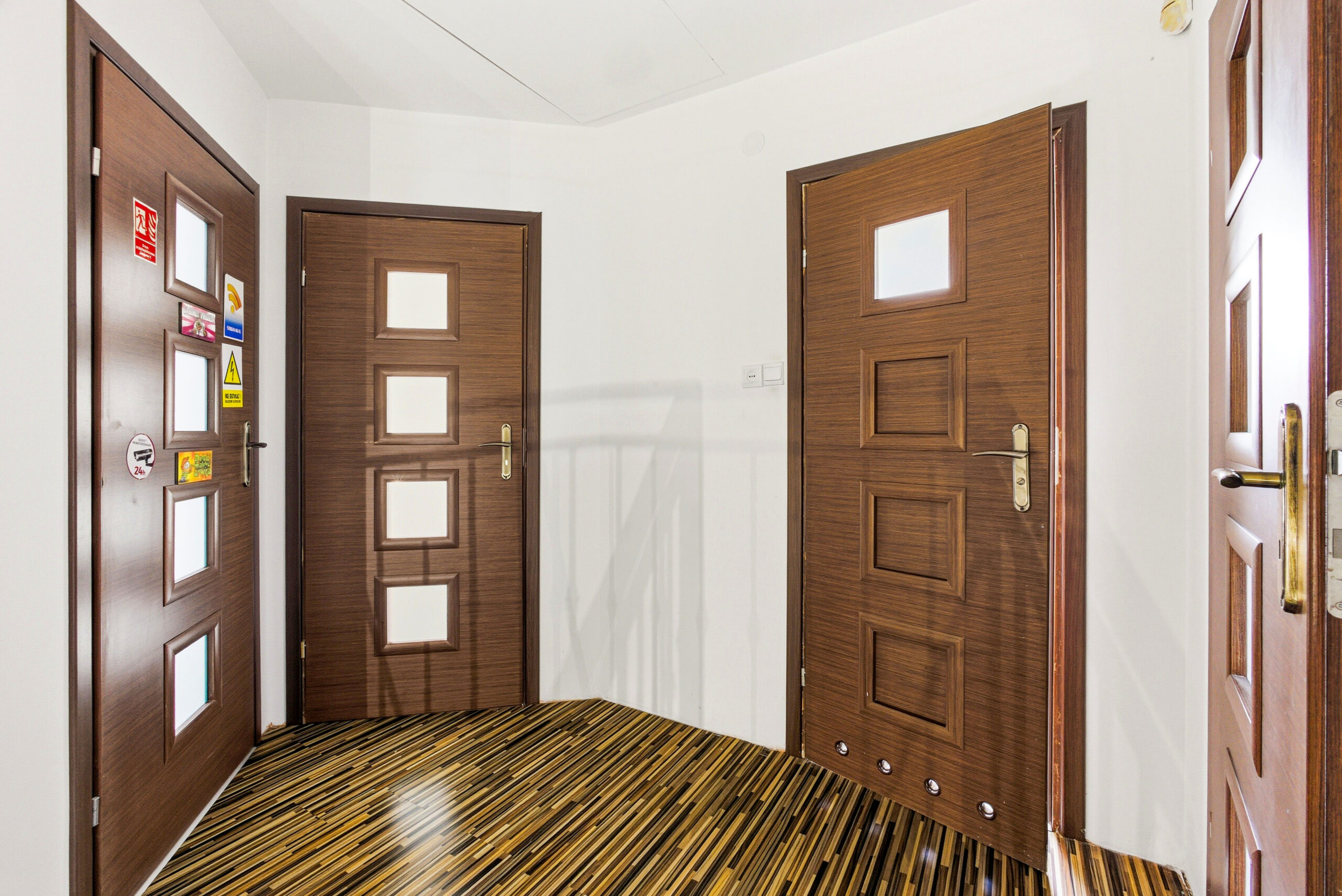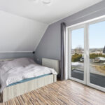 direct access to the garden. Kitchen (7.30 m²): With an ergonomic peninsula and a comfortable work layout. Pantry (1.30 m²): Practical kitchen storage. WC (1.90 m²): With a shower. Vestibule (3.50 m²) as well as Hall (6.20 m²) and Corridor (3.10 m²). Single garage (18.90 m²) within the body of the building. Boiler room (5.80 m²): Also serving as a laundry and drying room. Stairs (2.80 m²). First floor (45.4 m² usable area / 58.4 m² floor space): Bedroom I: 11.30 m² (13.10 m² floor space). Bedroom II: 10.50 m² (14.10 m² floor space).Bedroom III: 10.30 m² (13.80 m² floor space). Bathroom: 4.40 m² (6.30 m² floor space) – equipped with a bathtub. Dressing room: 2.50 m² (4.70 m² floor space). Corridor (3.60 m²) and Stairs (2.80 m²).