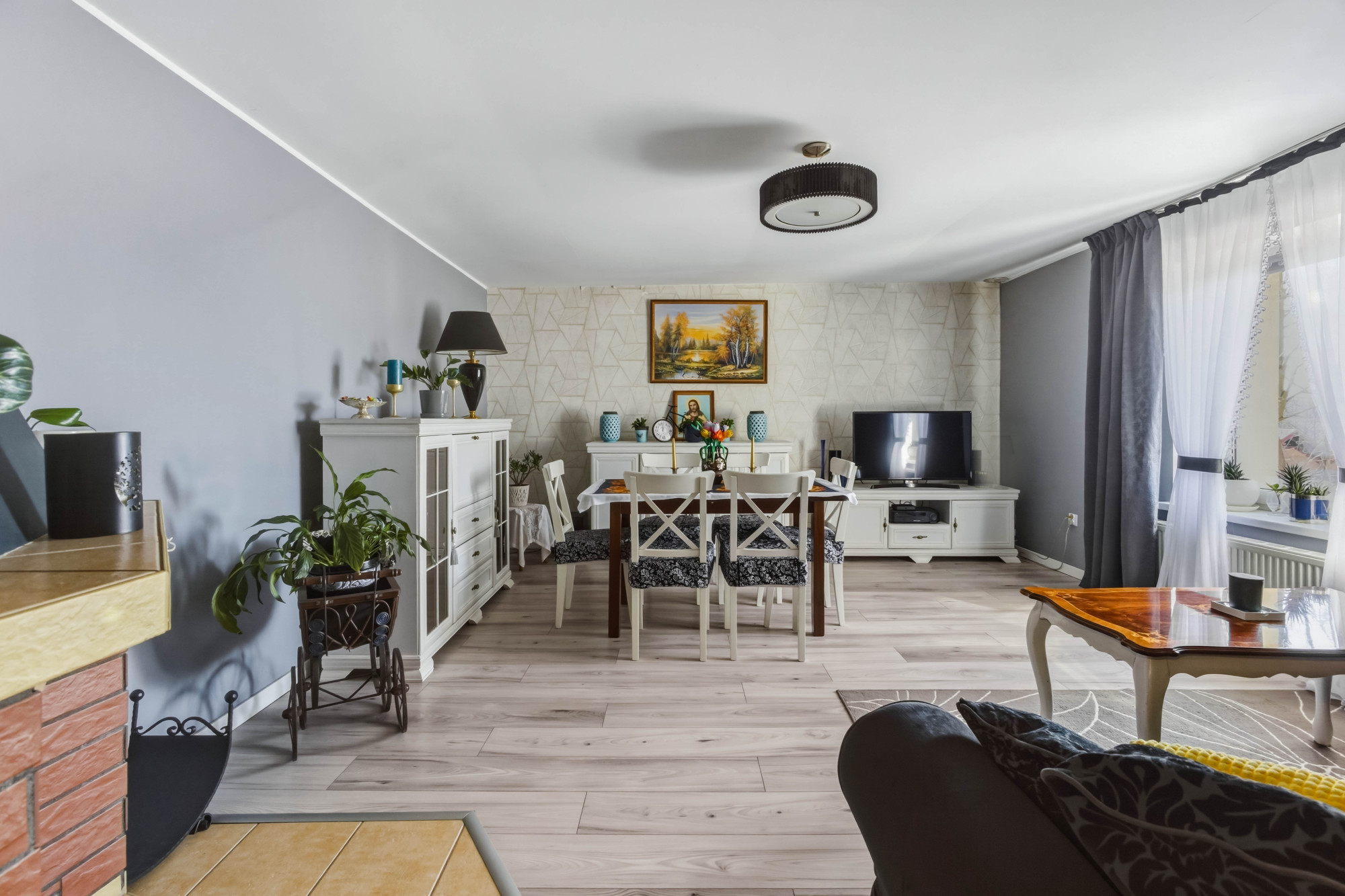 A detached two-storey house that underwent a comprehensive renovation in 2021. The building is characterized by spacious, wellproportioned rooms and immense architectural potential – the upper floor, with a floor area of 109 m², remains available for individual finishing according to the buyer’s needs.